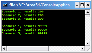 41 Console.WriteLine(“Scenario 2, result: “ + result.ToString());