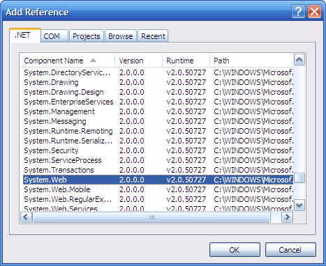 Figure 2: locate and choose System.Web