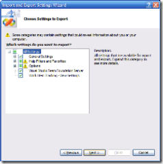 | Go to Tools | Import and Export Settings… and the following screen will appear (/images/Figure 1): |