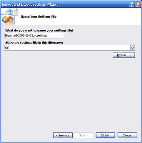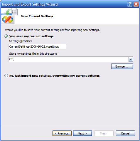 Exporting and importing Visual Studio 2005 settings