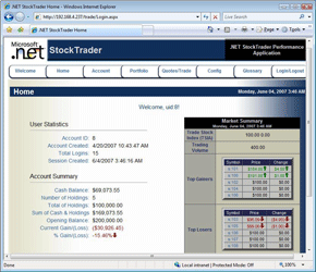 This application is an end-to-end sample application for .NET Enterprise Application Server technologies. It is a service-oriented application based on Windows Communication Foundation (/images/.NET 3.0) and ASP.NET, and illustrates many of the .NET enterprise development technologies for building highly scalable, rich “enterprise-connected” applications. It is designed as a benchmark kit to illustrate alternative technologies within .NET and their relative performance. The application offers full interoperability with J2EE and IBM WebSphere’s Trade 6.1 sample application. As such, the application offers an excellent opportunity for developers to learn about .NET and building interoperable, service-oriented applications.