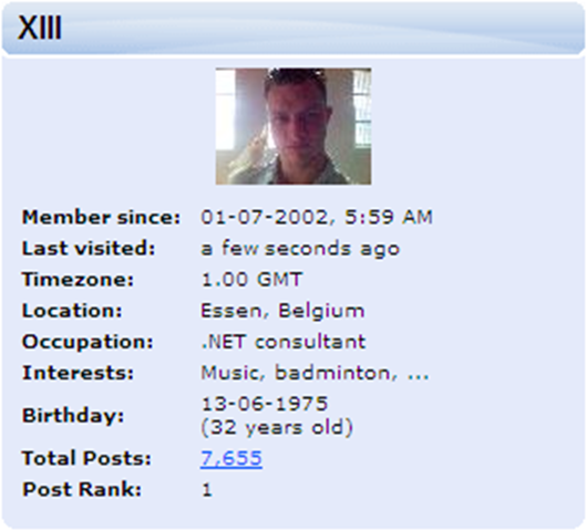 Today I’m celebrating my lustrum on the ASP.NET forums. That also means that I started developing with .NET 5 years ago officially. I learned a lot in those 5 years and not only on a technical level. With this post I would also like to thank Patrick Vanoverbeke for picking me out of the crowd to start developing ASP.NET applications back then and giving me the opportunity to grow on a steady pace.