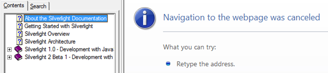 I downloaded the documentation of the new Silverlight 2 Beta 1. When I tried to open it, after a successful download was this: