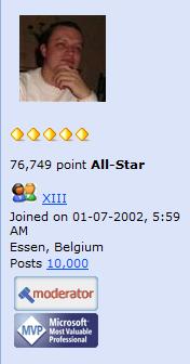 Just noticed that I just wrote my 10.000th post on the ASP.NET forums. Cool! Well I hope many people enjoyed my replies and possible answers during those years.