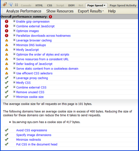Page speed: Page Speed is an open-source Firefox/Firebug Add-on. Webmasters and web developers can use Page Speed to evaluate the performance of their web pages and to get suggestions on how to improve them. A handy plugin by Google.