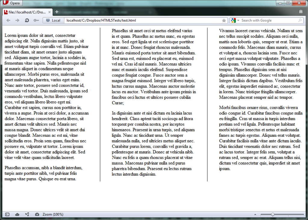 As you can see, with some easy to use CSS 3 column module goodness one can style up the readability of content in an easy way. In the future more and more browsers will support this natively out of the box as well so keep it in mind for one of your next projects.