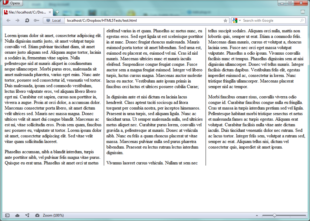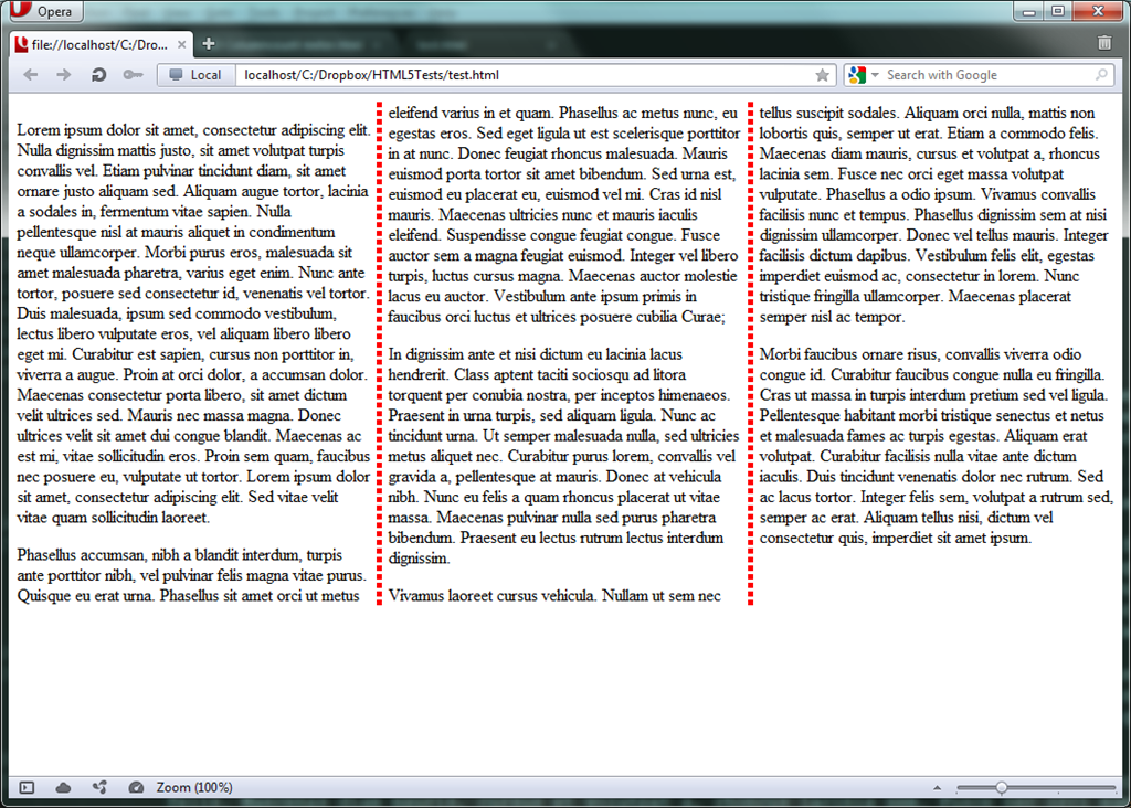 Making several columns up with practically no effort is nice but sometimes you want to have a small improvement in readability and add small guidelines in between to better separate the different columns. With the column-rule you can add these. The syntax follows the same easy to remember format like we’re used to from setting a border: