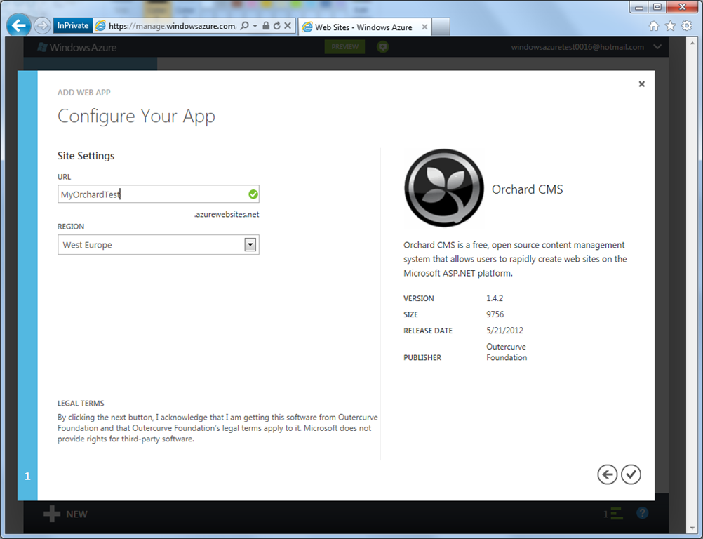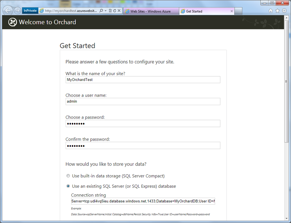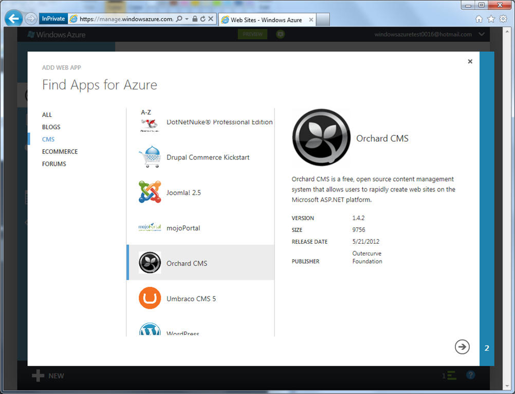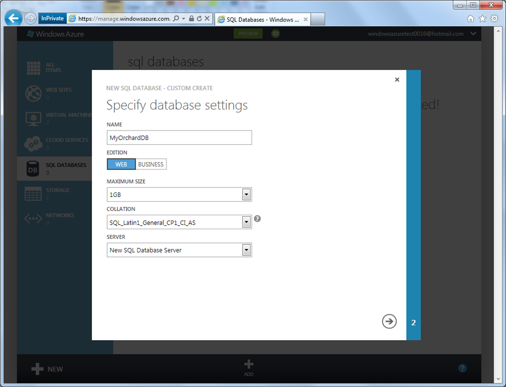How to setup Orchard CMS on Windows Azure Web Sites with a Windows Azure SQL Database